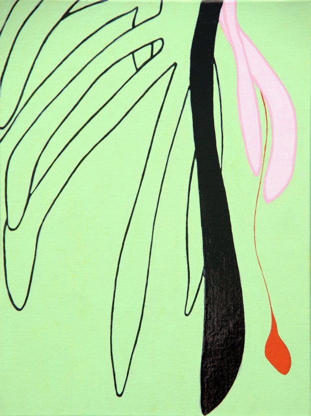 “Zwarte plant”, acryl en glanslak op doek, 30 x 40 cm, 2019